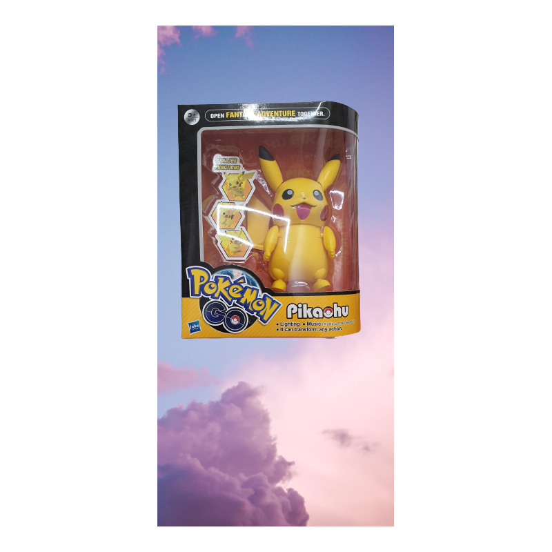 Pikachu luz y sonido. Tamaño de pikachu: 15 cm aprox. Tamaño de la caja: 22x18 cm